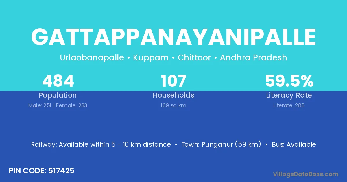 Gattappanayanipalle village has a total population of 484 people, of which 251 are males and 233 are females.