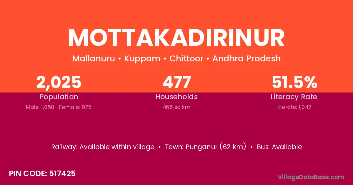 There are approximately 477 households in Mottakadirinur village.