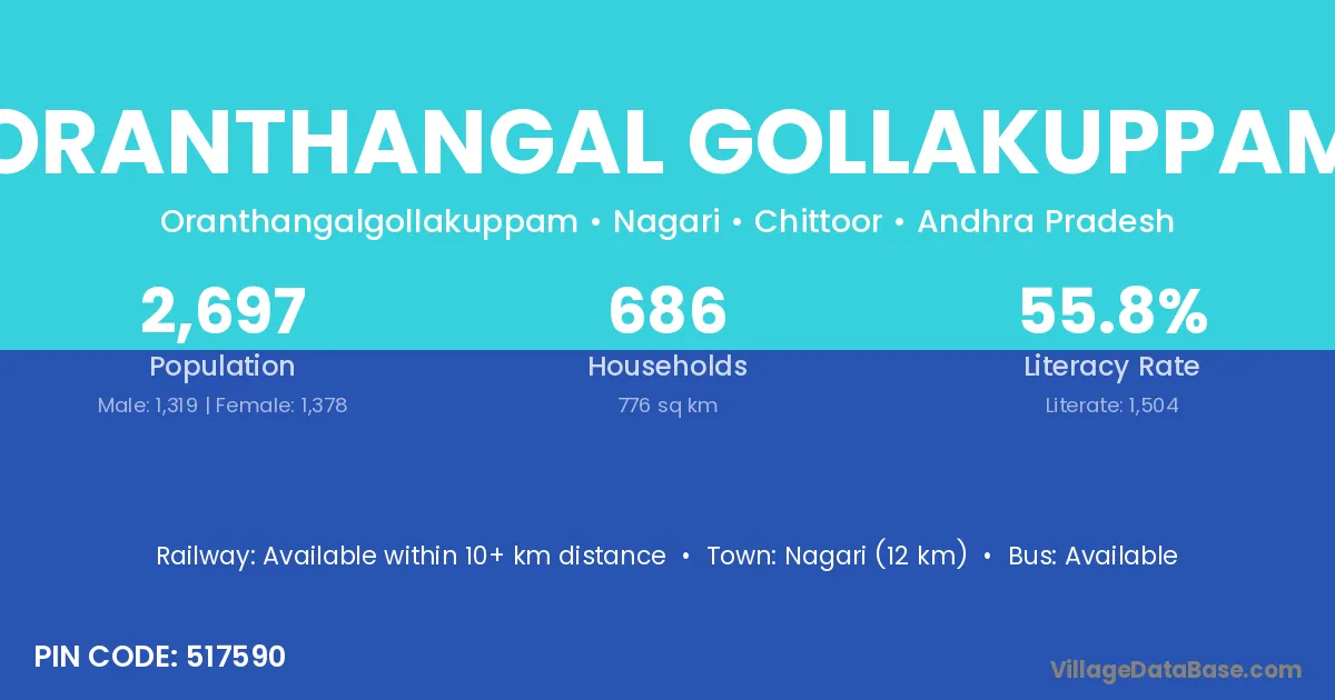 Nagari (12 km) is the nearest town to Oranthangal Gollakuppam village for major economic activities and is located approximately 12 km away.