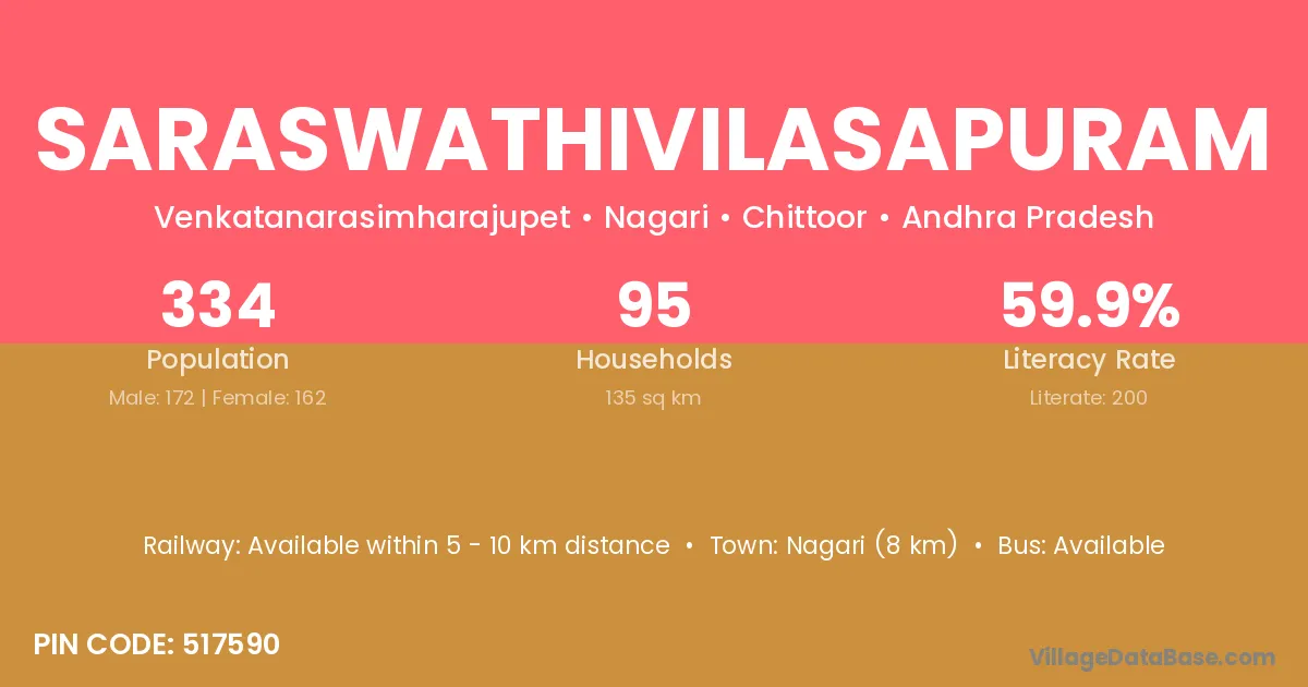 Nagari (8 km) is the nearest town to Saraswathivilasapuram village for major economic activities and is located approximately 8 km away.