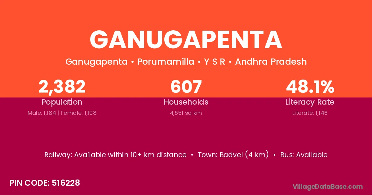 Chittoor (46 km) is the nearest town to Ganugapenta village for major economic activities and is located approximately 46 km away.