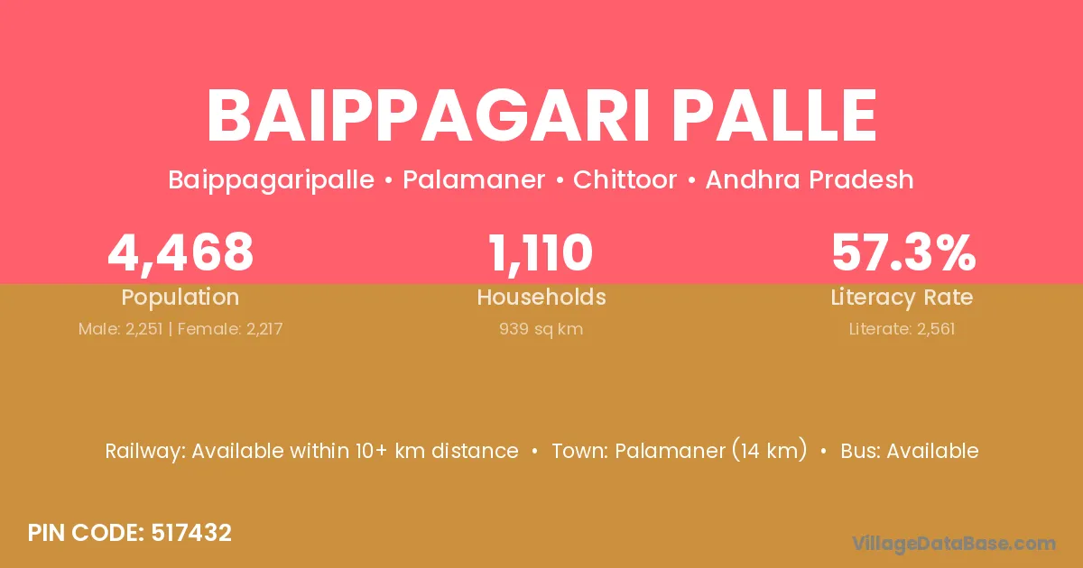 Baippagari Palle village has a total population of 4,468 people, of which 2,251 are males and 2,217 are females.