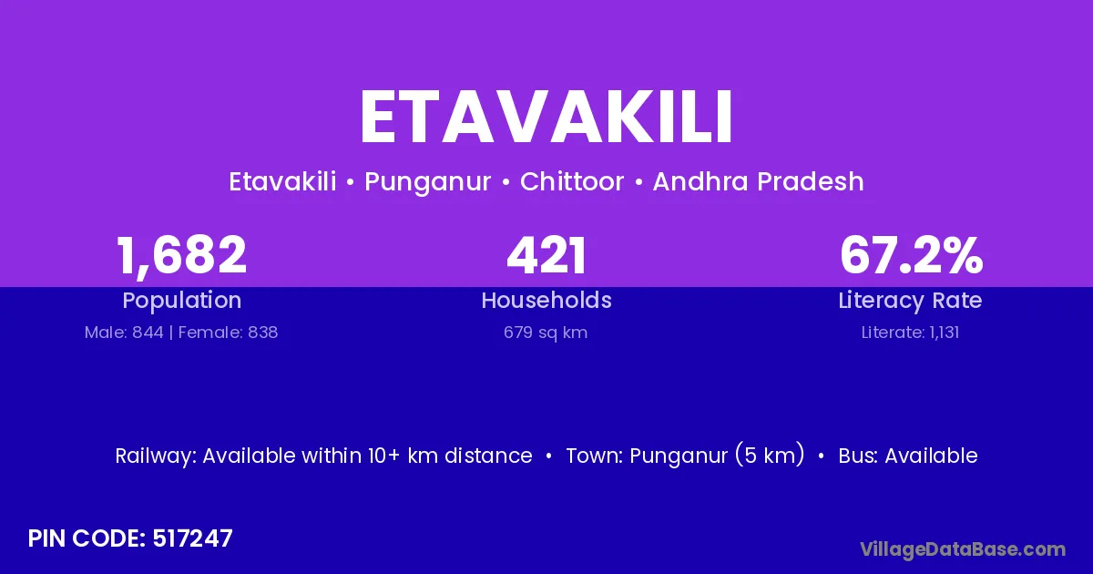 Punganur (5 km) is the nearest town to Etavakili village for major economic activities and is located approximately 5 km away.