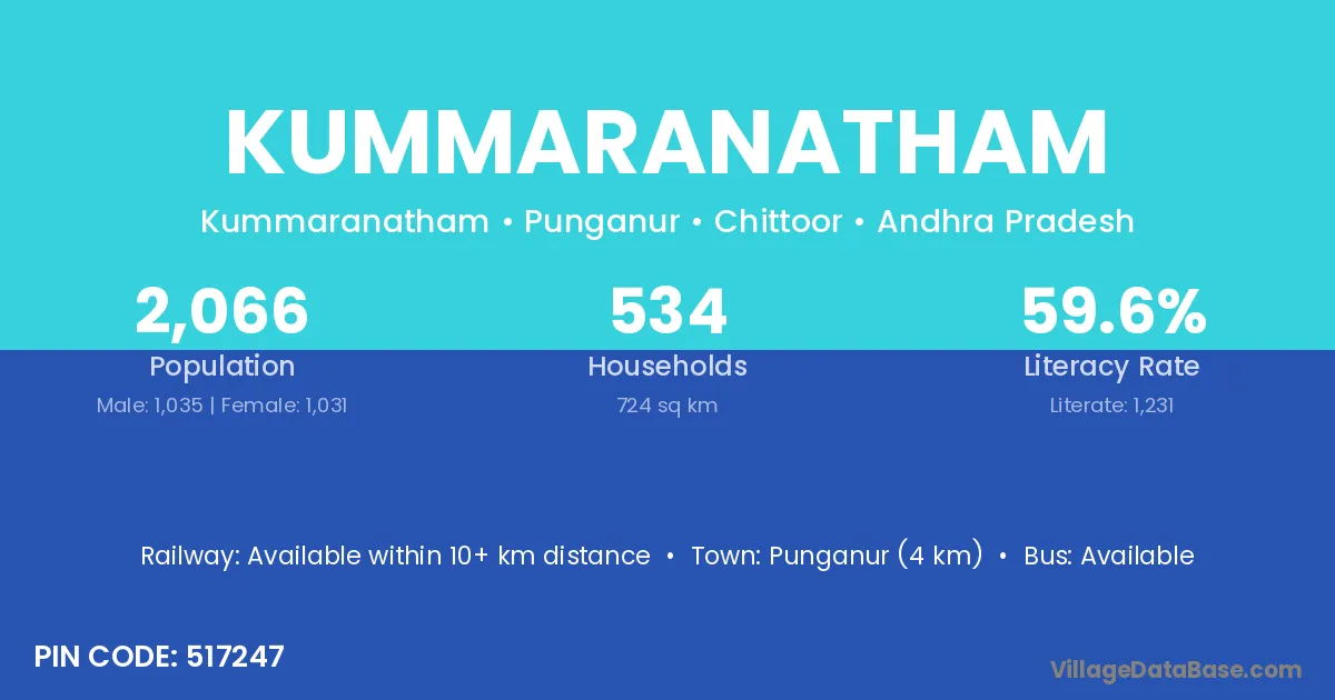 Punganur (4 km) is the nearest town to Kummaranatham village for major economic activities and is located approximately 4 km away.