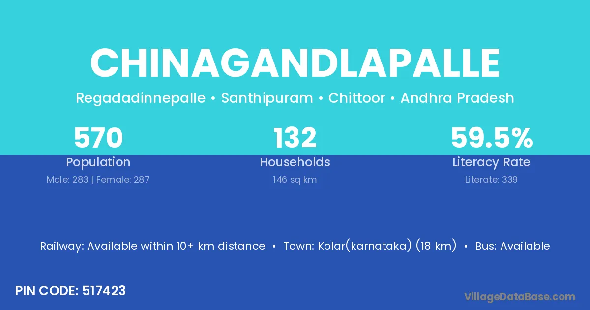 Chinagandlapalle village has a total population of 570 people, of which 283 are males and 287 are females.