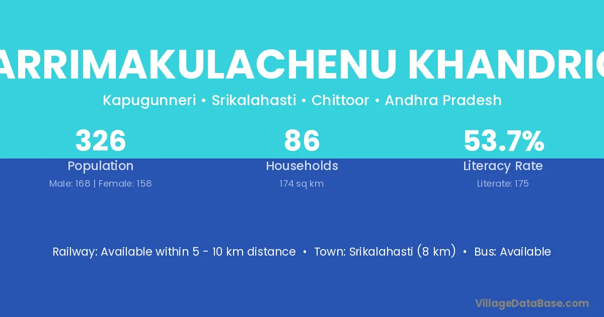 Srikalahasti (8 km) is the nearest town to Marrimakulachenu Khandriga village for major economic activities and is located approximately 8 km away.