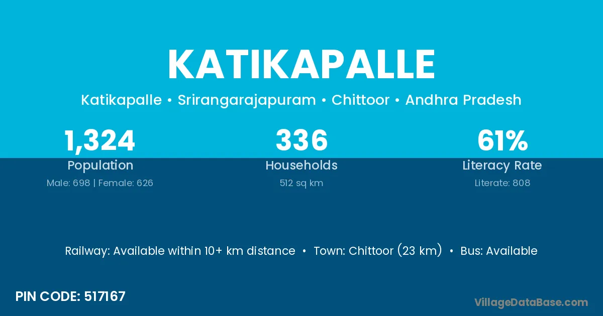 Chittoor (23 km) is the nearest town to Katikapalle village for major economic activities and is located approximately 23 km away.
