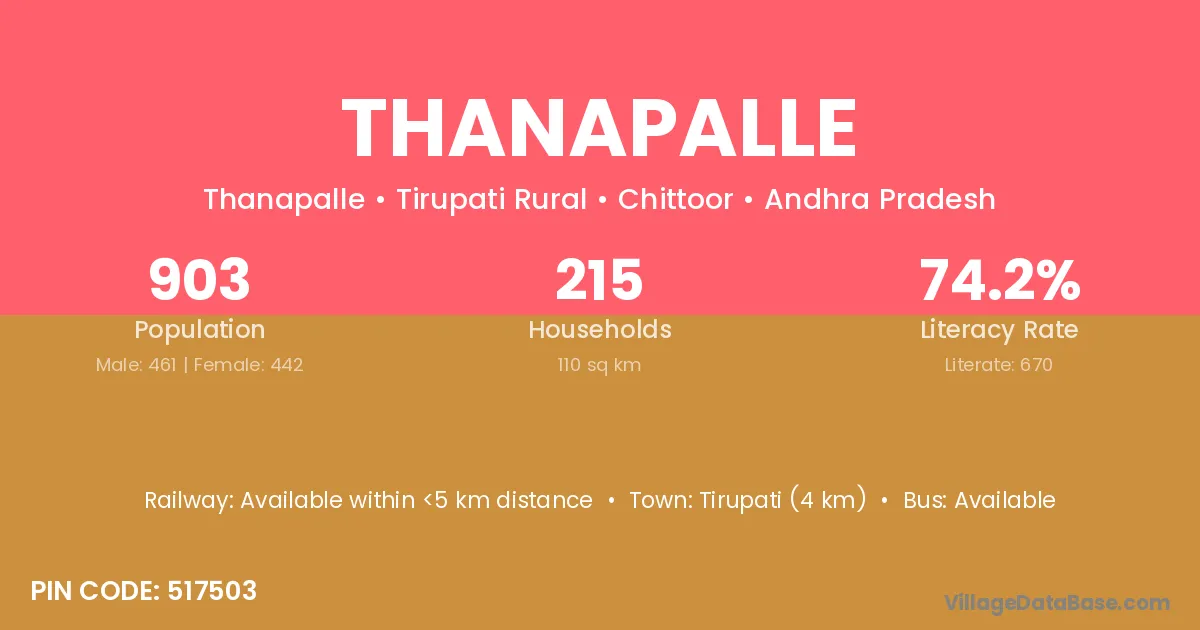 Tirupati (4 km) is the nearest town to Thanapalle village for major economic activities and is located approximately 4 km away.