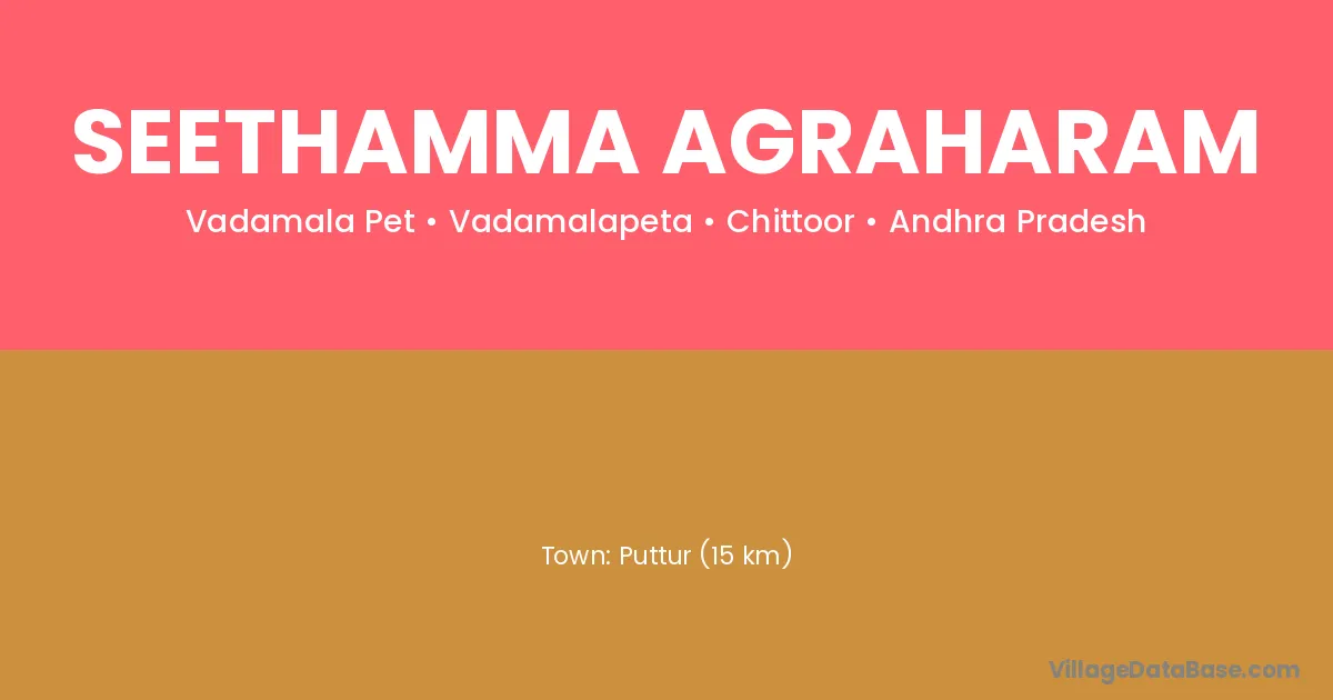 Puttur (15 km) is the nearest town to Seethamma Agraharam village for major economic activities and is located approximately 15 km away.