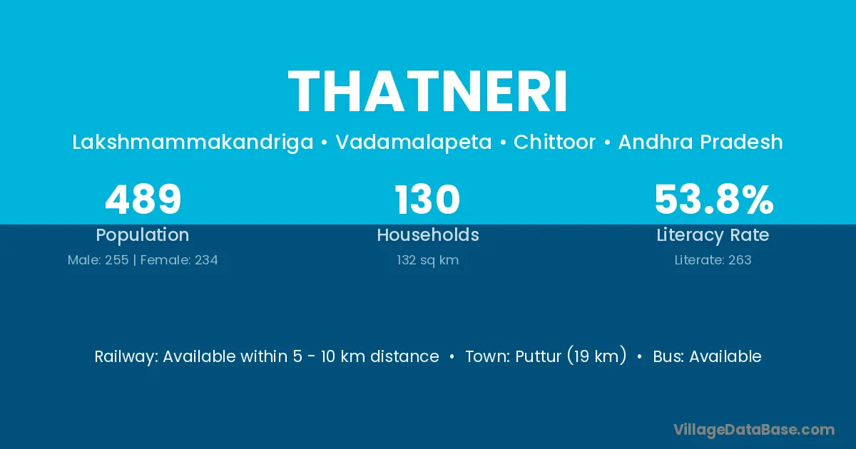 Thatneri village has a total population of 489 people, of which 255 are males and 234 are females.