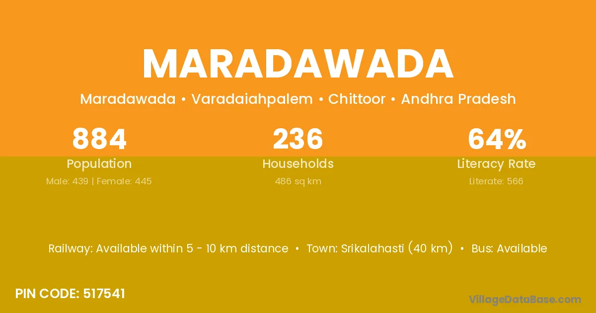 Srikalahasti (40 km) is the nearest town to Maradawada village for major economic activities and is located approximately 40 km away.