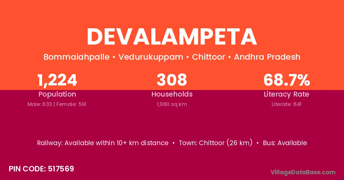 Chittoor (26 km) is the nearest town to Devalampeta village for major economic activities and is located approximately 26 km away.