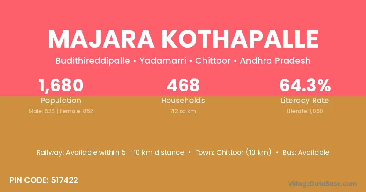 Majara Kothapalle village has a total population of 1,680 people, of which 828 are males and 852 are females.