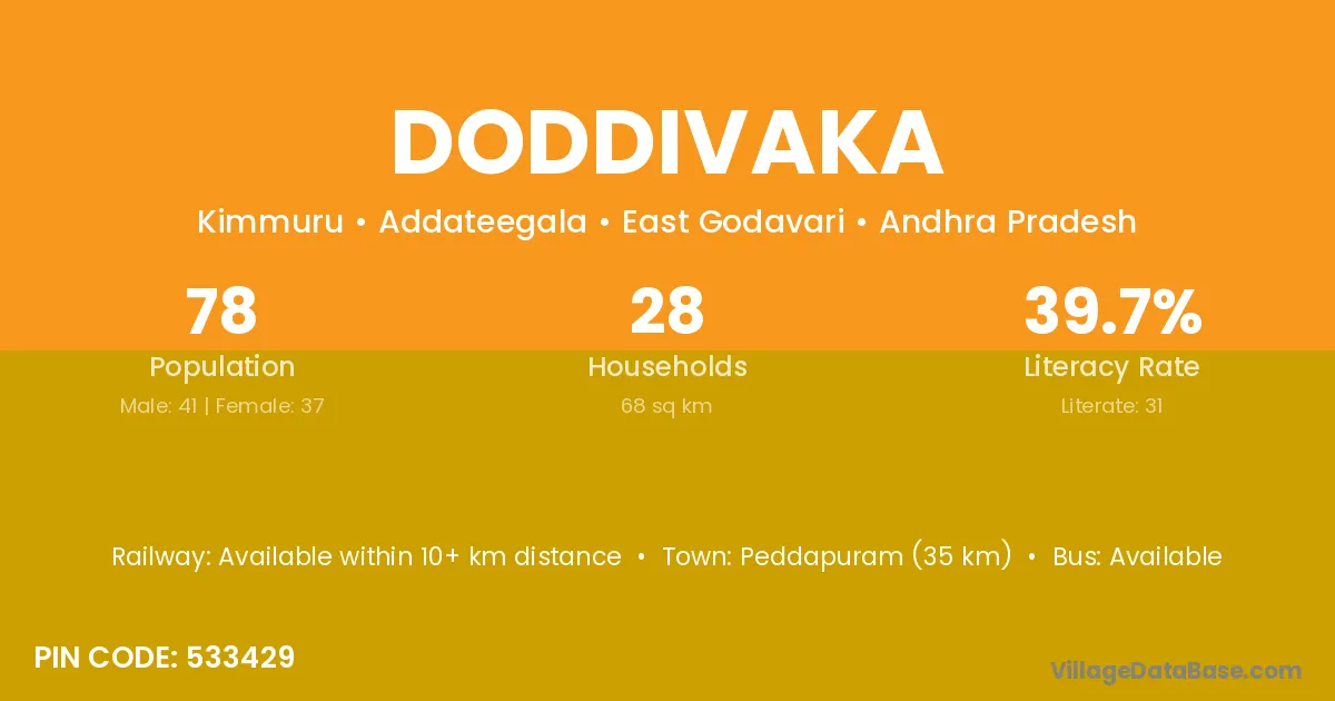 Peddapuram (35 km) is the nearest town to Doddivaka village for major economic activities and is located approximately 35 km away.