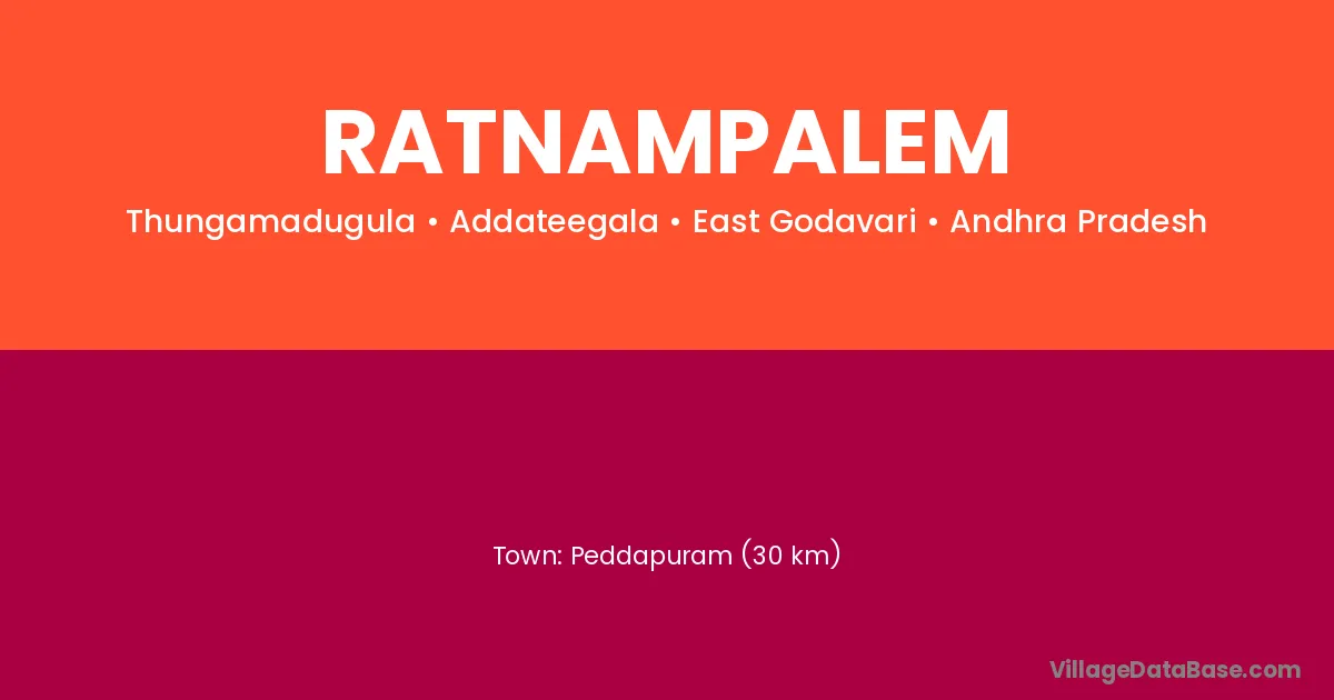 Peddapuram (30 km) is the nearest town to Ratnampalem village for major economic activities and is located approximately 30 km away.
