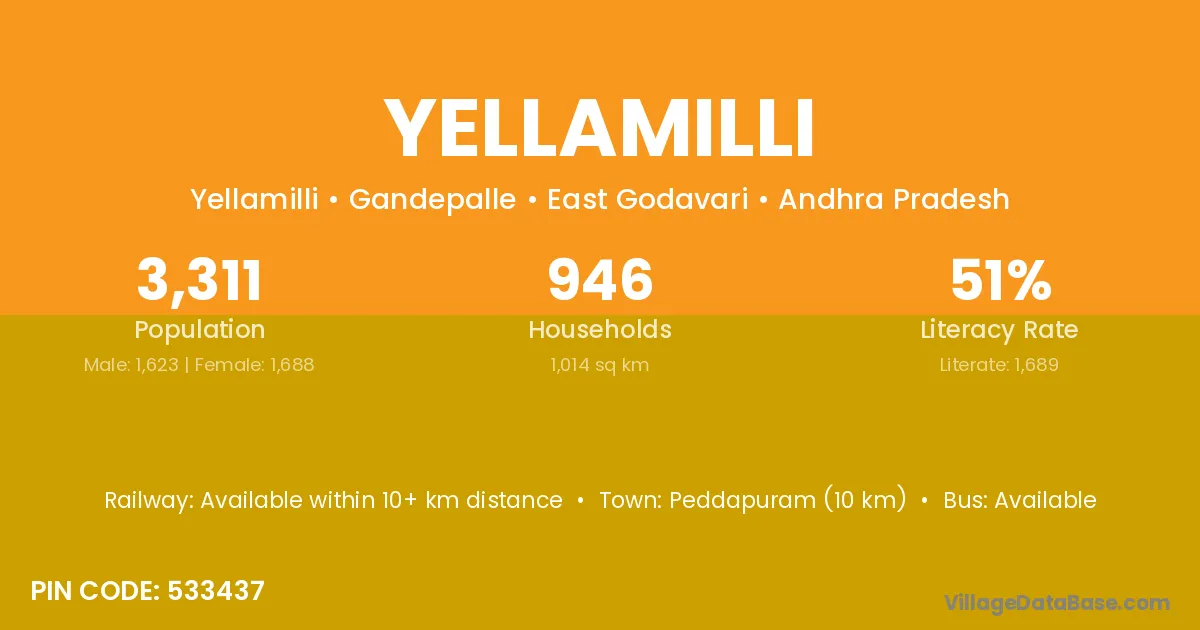 According to Census 2011 information, the village code of Yellamilli village is 533437.