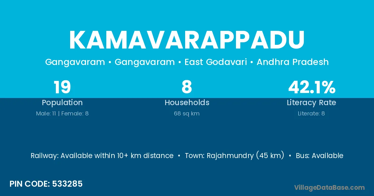 Kamavarappadu village has a total population of 19 people, of which 11 are males and 8 are females.