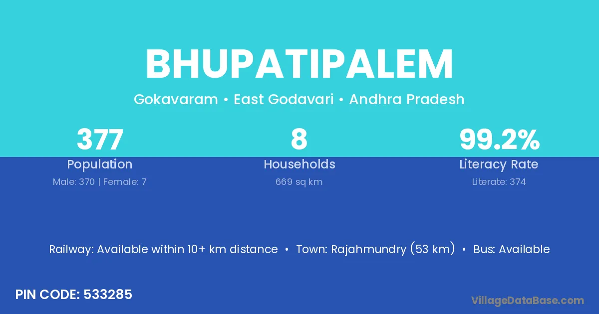 According to Census 2011 information, the village code of Bhupatipalem village is 533285.