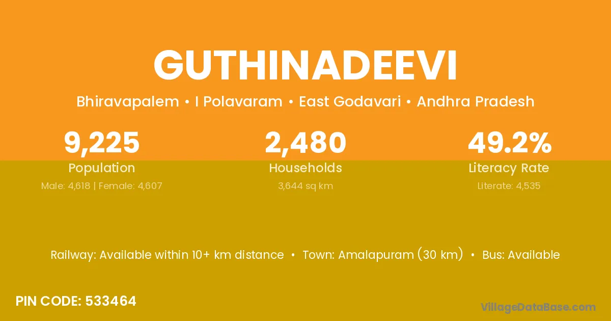 According to Census 2011 information, the village code of Guthinadeevi village is 533464.
