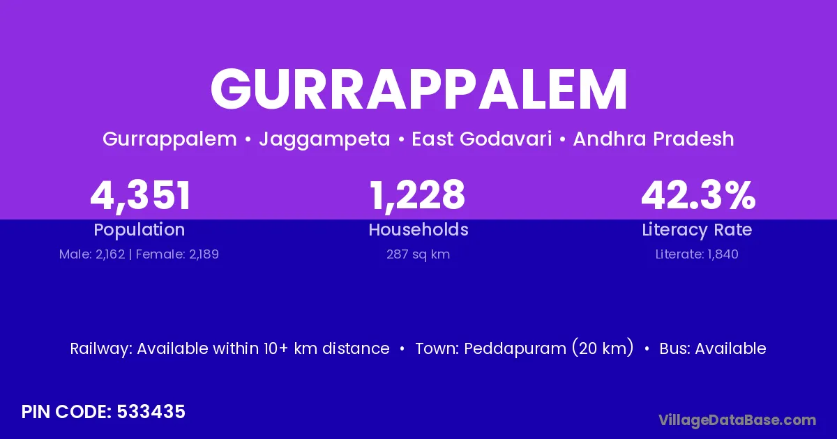 According to Census 2011 information, the village code of Gurrappalem village is 533435.