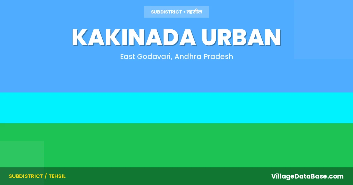 Kakinada Urban is a town and Mandal in the East Godavari district of the Andhra Pradesh. In India, a Mandal is a subdivision of a district responsible for the administration and revenue collection of a specific area within the district. Mandals play a crucial role in the local governance structure, contributing significantly to the development and administration of their communities.
