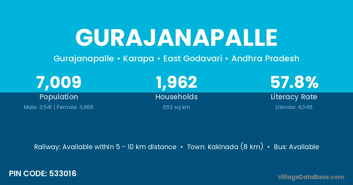 According to Census 2011 information, the village code of Gurajanapalle village is 533016.