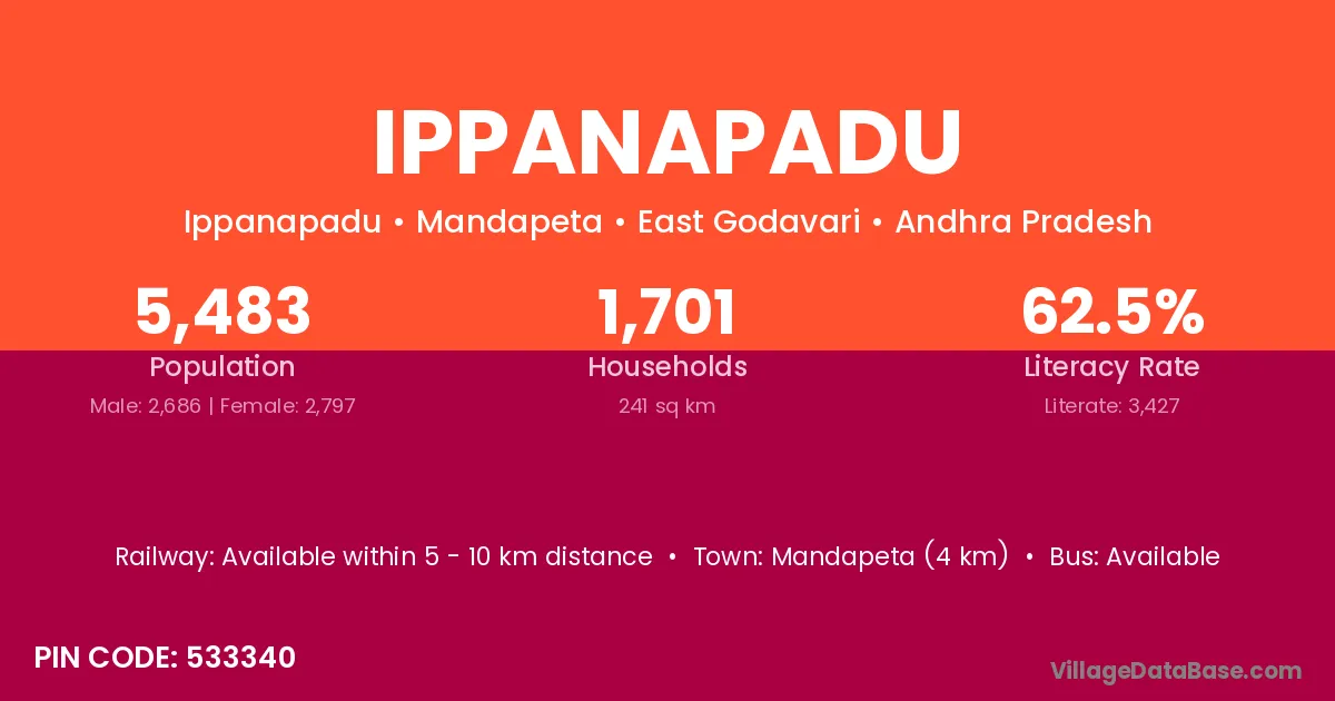 Mandapeta (4 km) is the nearest town to Ippanapadu village for major economic activities and is located approximately 4 km away.
