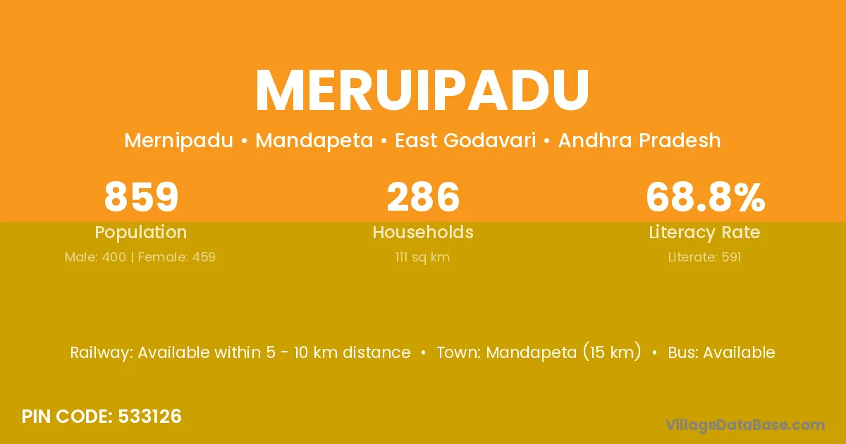 According to Census 2011 information, the village code of Meruipadu village is 533126.