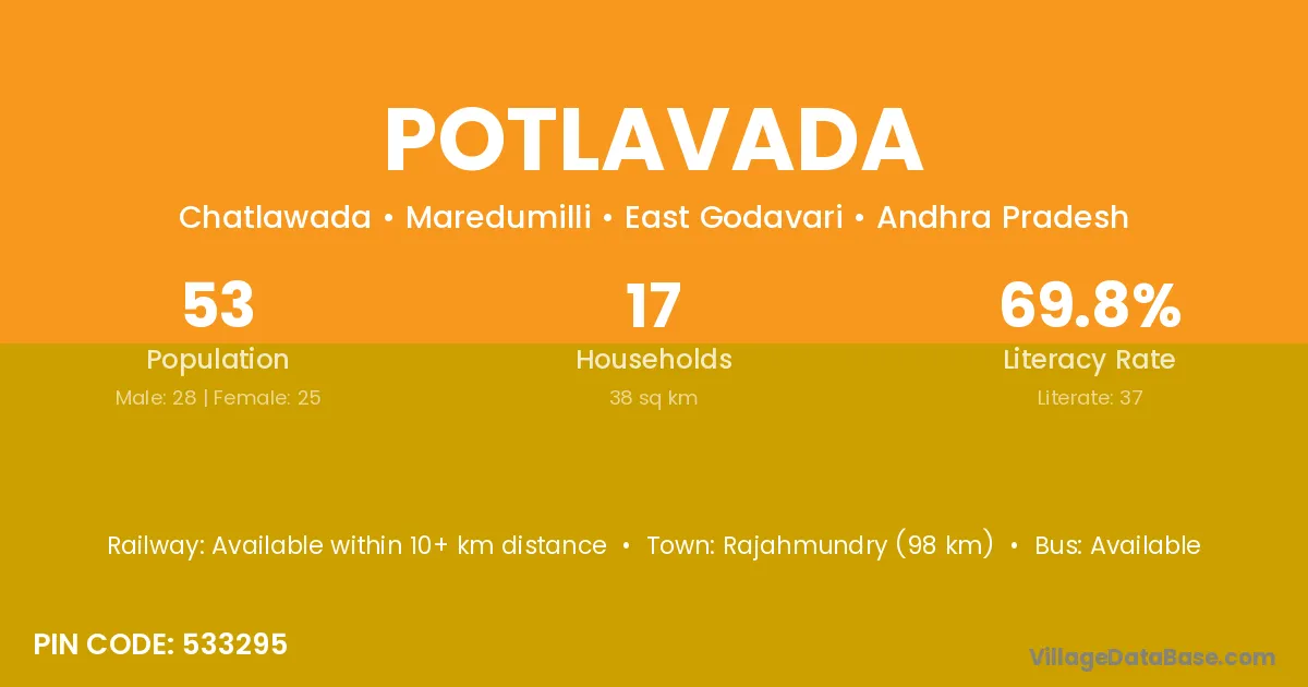 According to Census 2011 information, the village code of Potlavada village is 533295.