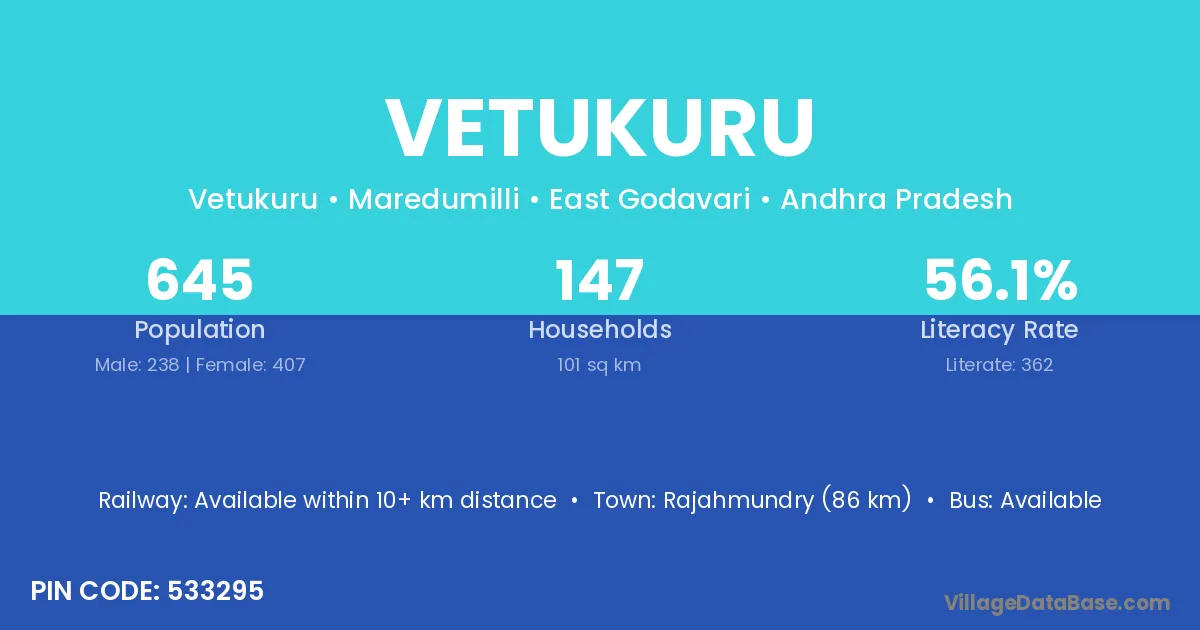 According to Census 2011 information, the village code of Vetukuru village is 533295.