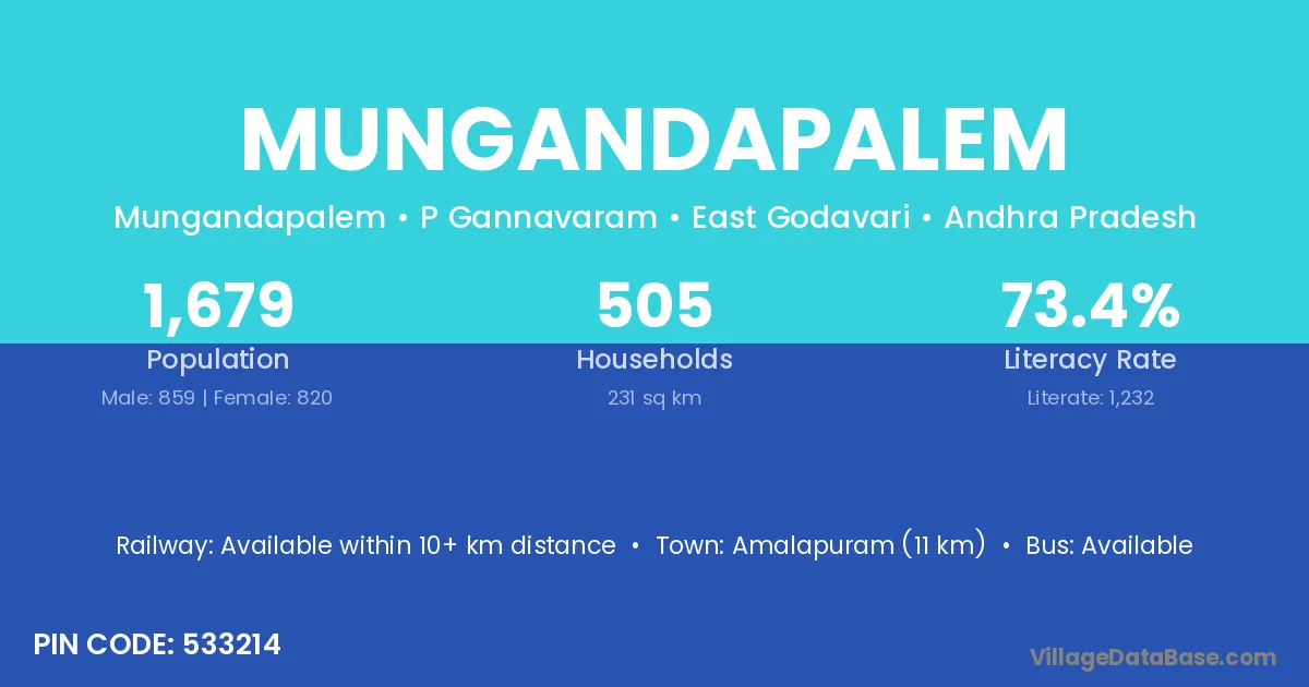 According to Census 2011 information, the village code of Mungandapalem village is 533214.