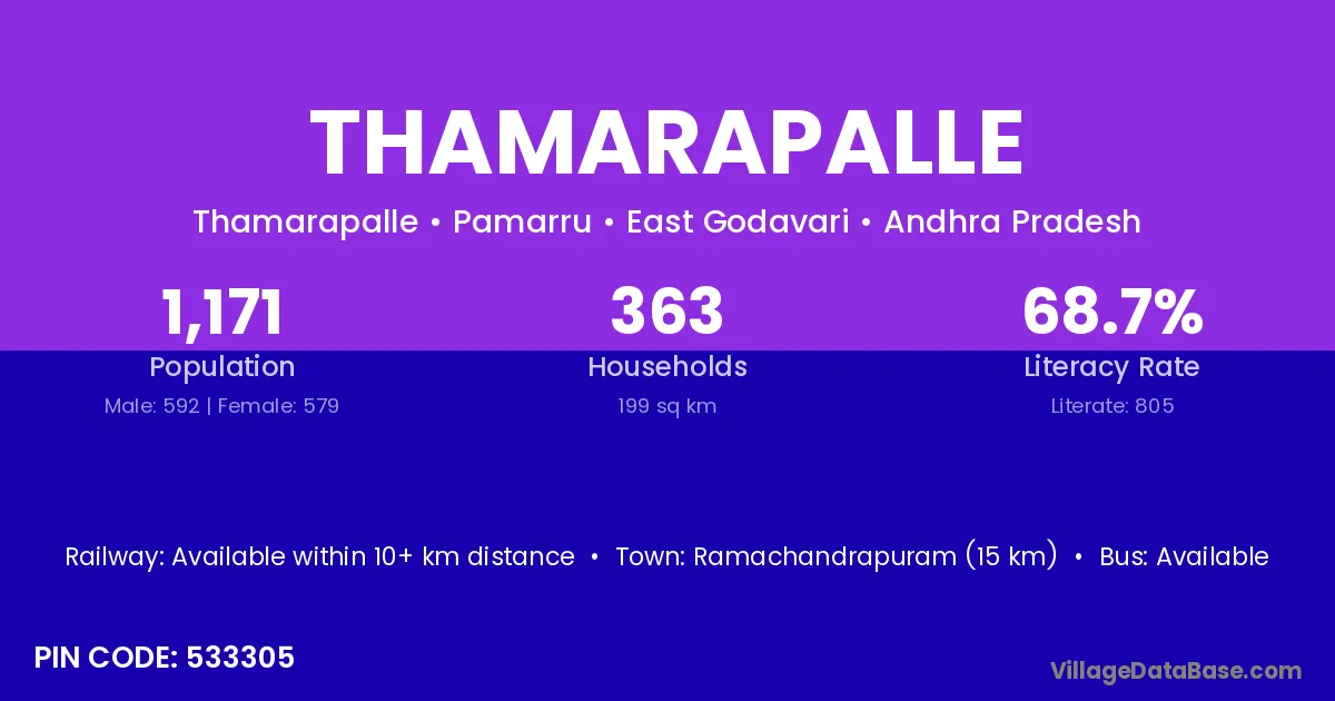 According to Census 2011 information, the village code of Thamarapalle village is 533305.