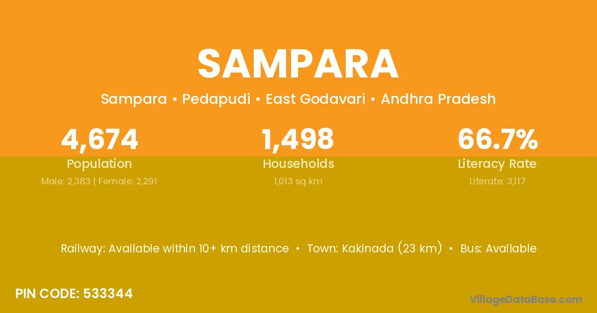 According to Census 2011 information, the village code of Sampara village is 533344.