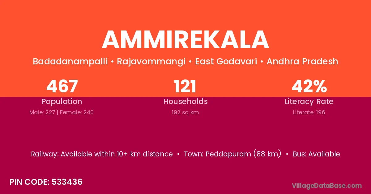 According to Census 2011 information, the village code of Ammirekala village is 533436.