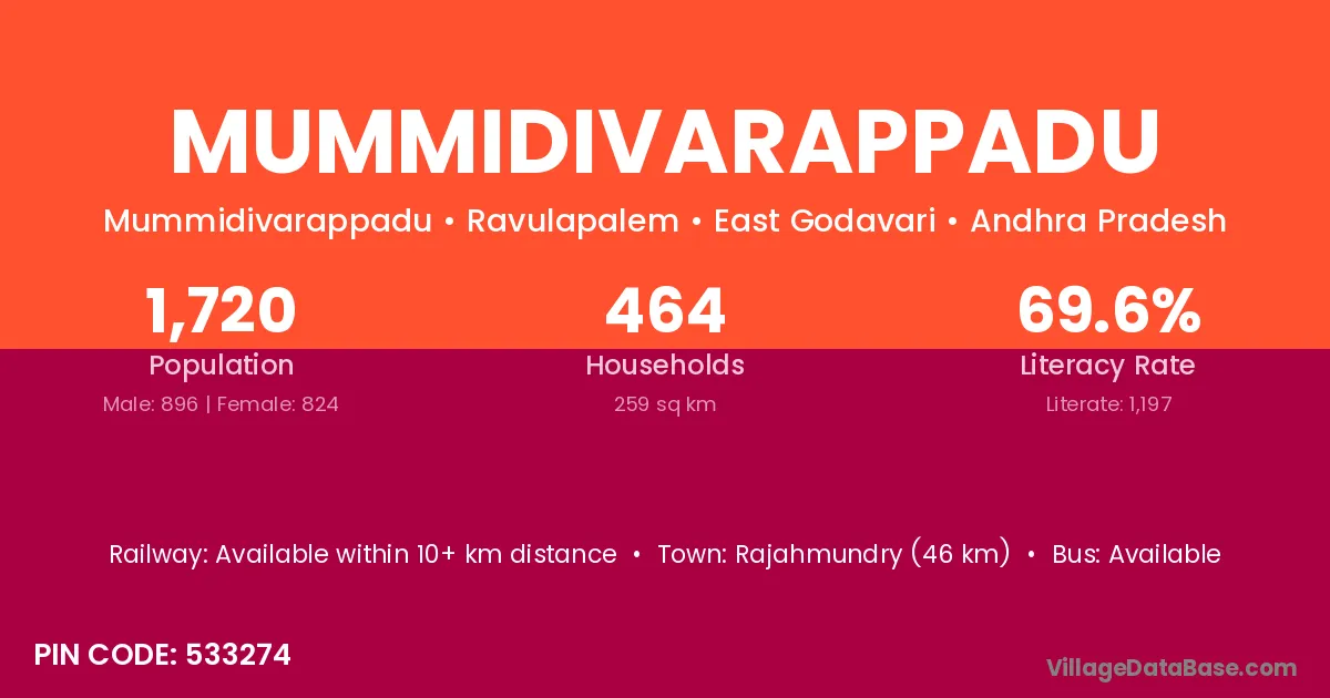 There are approximately 464 households in Mummidivarappadu village.