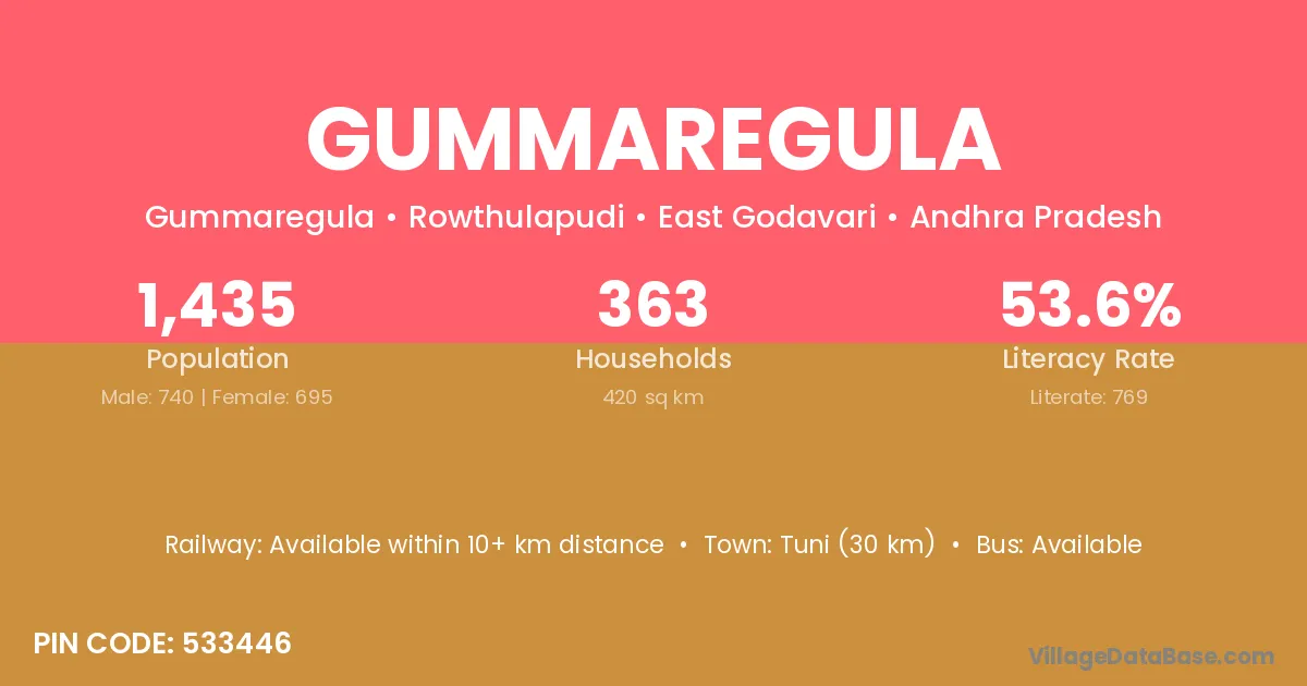According to Census 2011 information, the village code of Gummaregula village is 533446.
