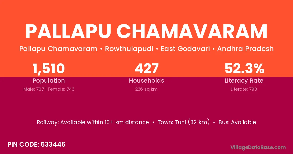 Pallapu Chamavaram village has a total population of 1,510 people, of which 767 are males and 743 are females.