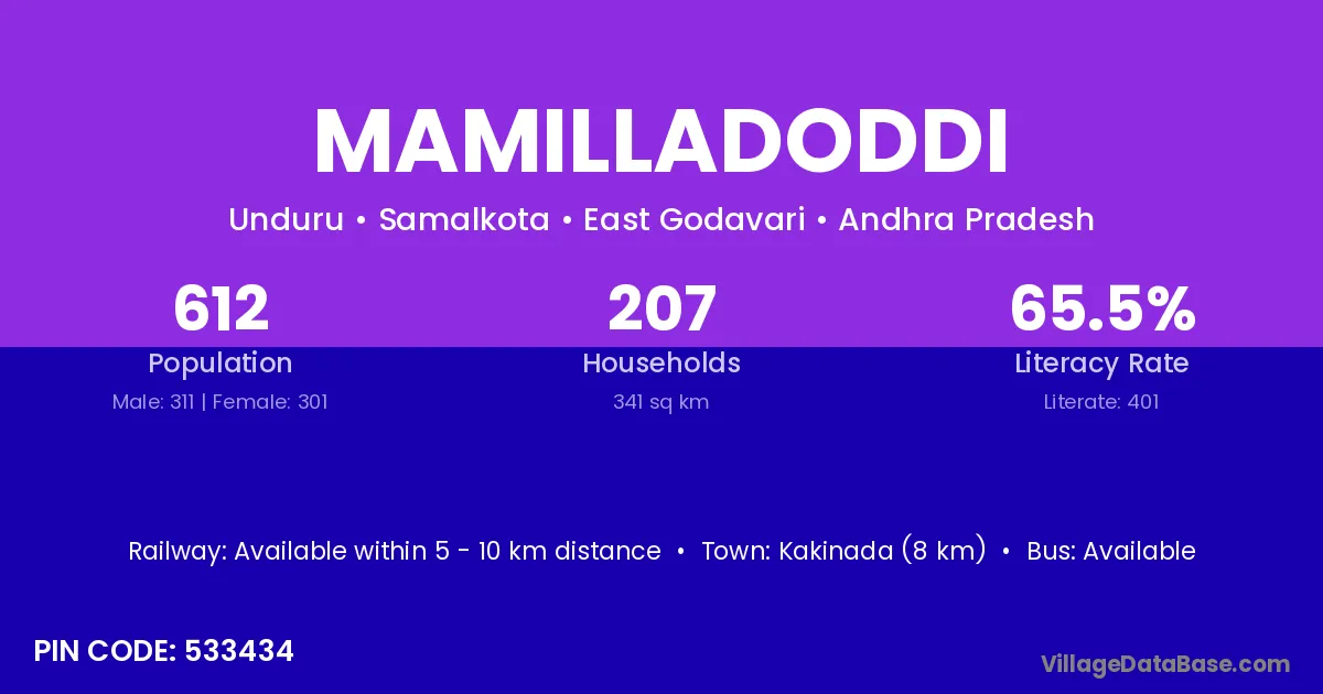 Mamilladoddi village has a total population of 612 people, of which 311 are males and 301 are females.