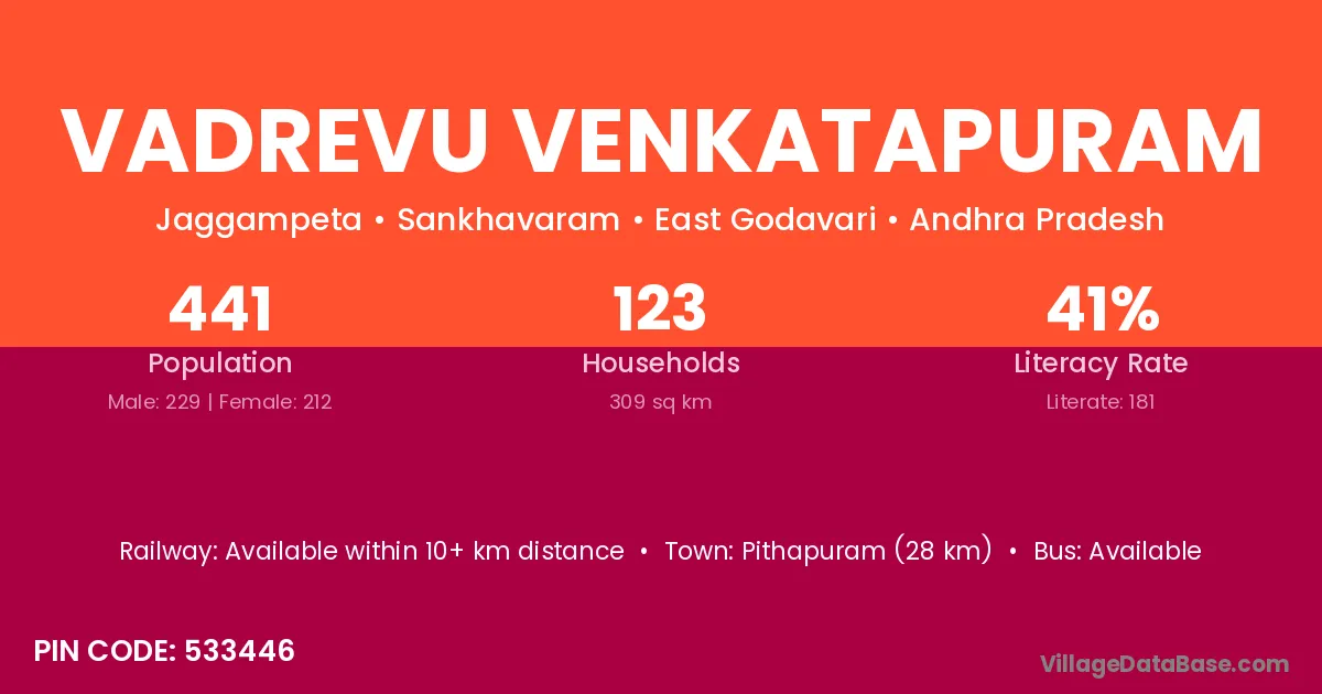 Vadrevu Venkatapuram village has a total population of 441 people, of which 229 are males and 212 are females.