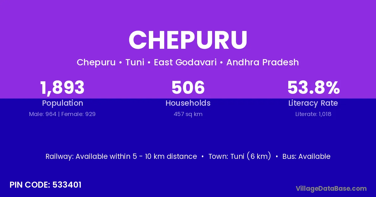 Chepuru village has a total population of 1,893 people, of which 964 are males and 929 are females.