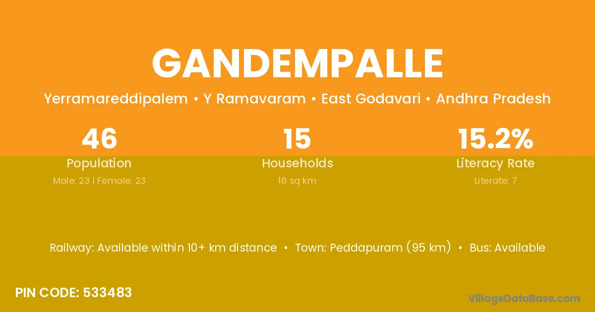 Gandempalle village has a total population of 46 people, of which 23 are males and 23 are females.