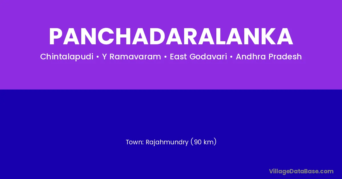 Rajahmundry (90 km) is the nearest town to Panchadaralanka village for major economic activities and is located approximately 90 km away.
