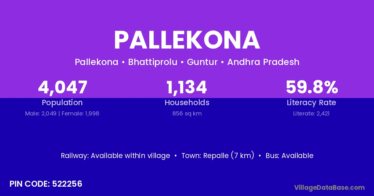 According to Census 2011 information, the village code of Pallekona village is 522256.