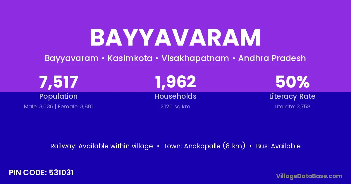 There are approximately 1,174 households in Bayyavaram village.