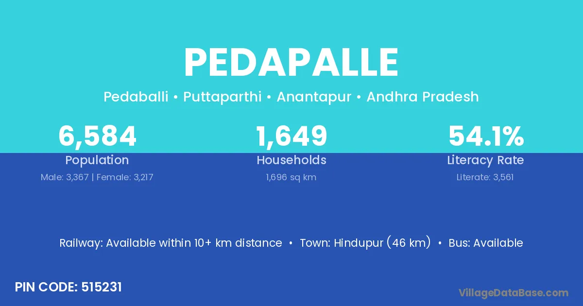 There are approximately 1,139 households in Pedapalle village.