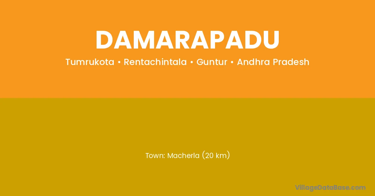 Macherla (20 km) is the nearest town to Damarapadu village for major economic activities and is located approximately 20 km away.