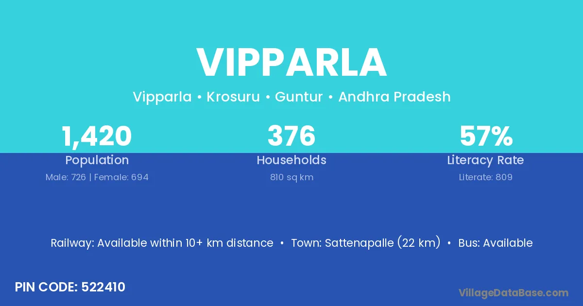 Narasaraopet (14 km) is the nearest town to Vipparla village for major economic activities and is located approximately 14 km away.