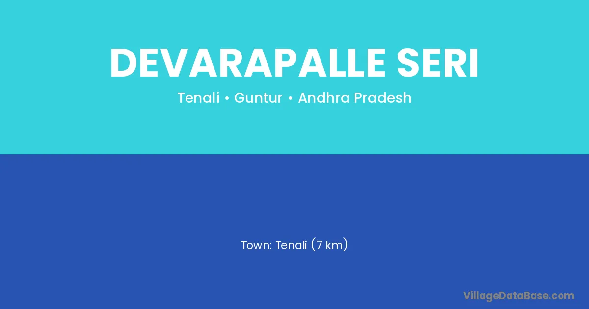 Tenali (7 km) is the nearest town to Devarapalle Seri village for major economic activities and is located approximately 7 km away.