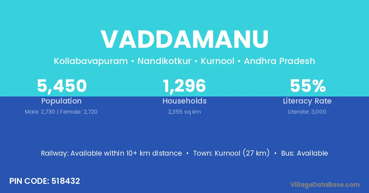 Vaddamanu village has a total population of 2,716 people, of which 1,347 are males and 1,369 are females.
