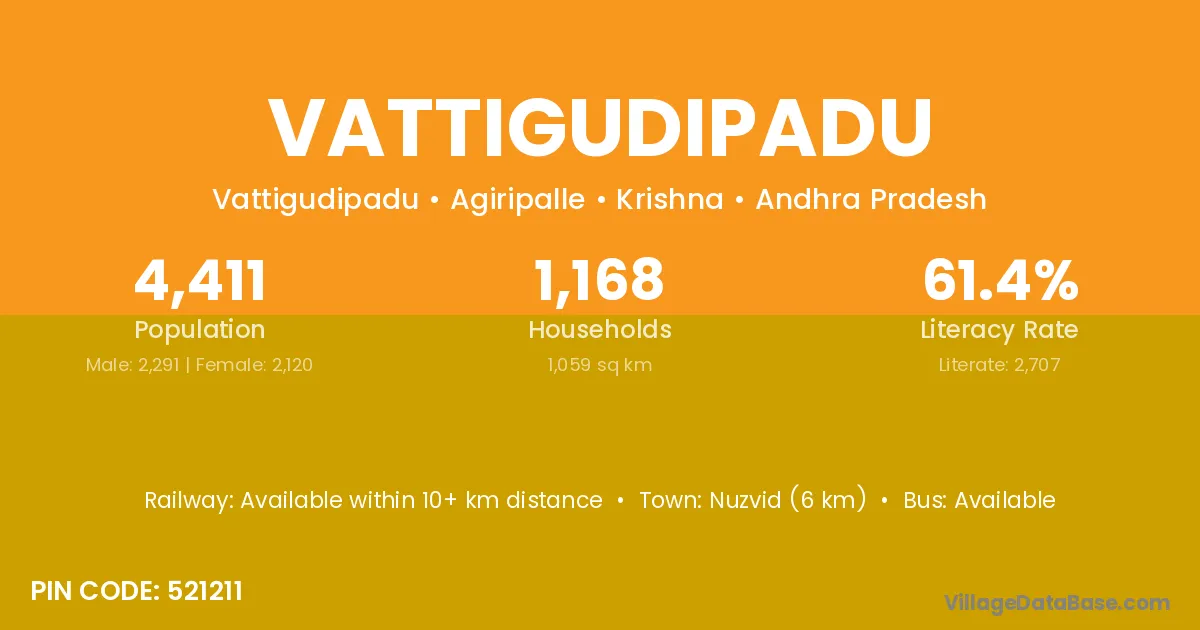 Vattigudipadu village has a total population of 4,411 people, of which 2,291 are males and 2,120 are females.